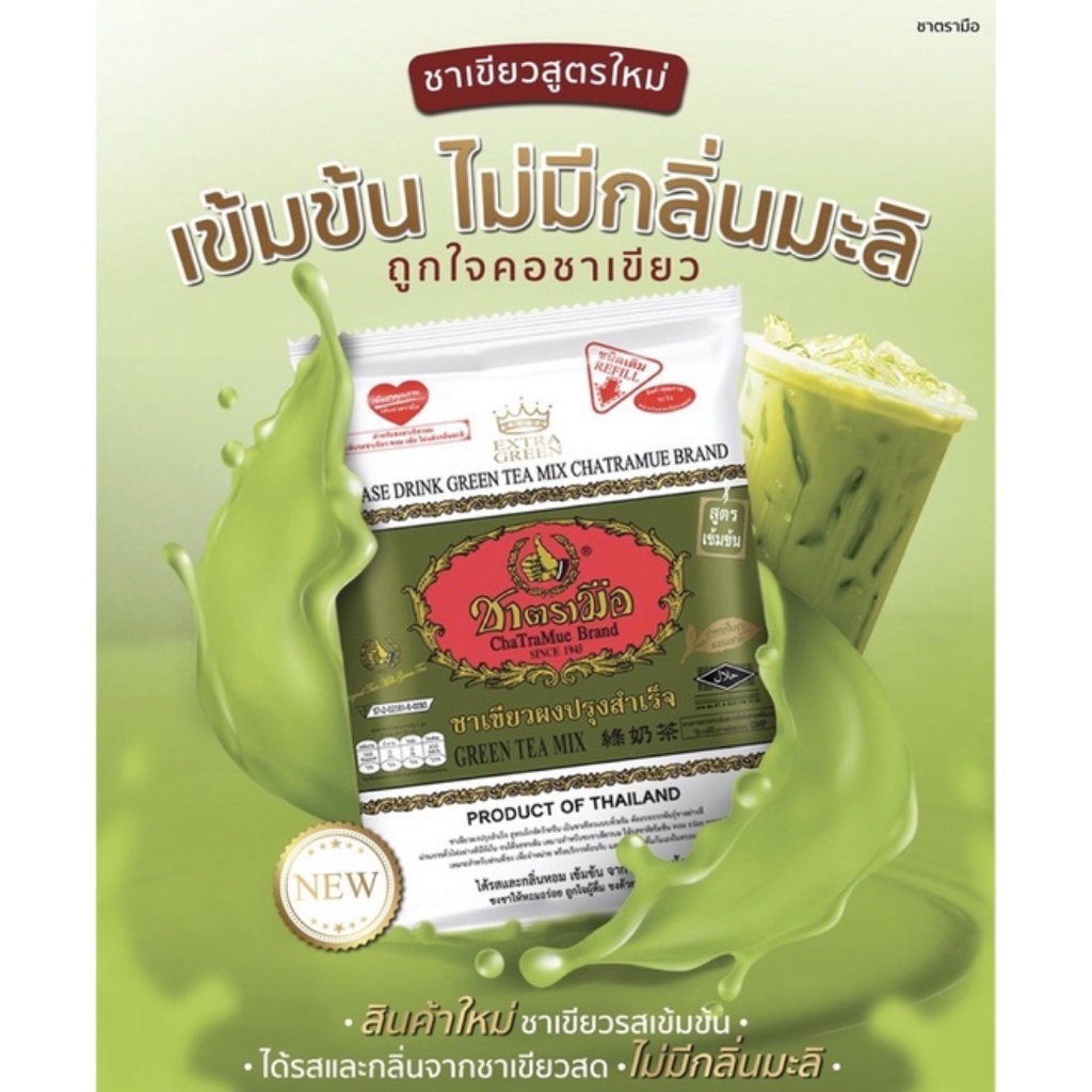 ชาเขียว Extra green เอ็กซ์ตร้า กรีน ชาเขียวสูตรเอ็กซ์ตร้ากรีน สูตรใหม่ ตรามือ ชาเขียวสูตรใหม่ 180 กรัม ชาตรามือ