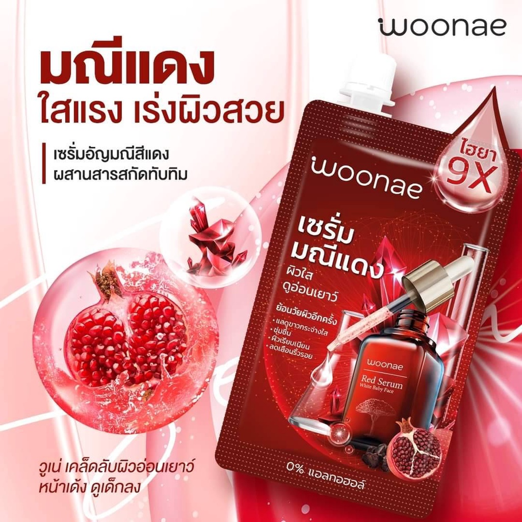 (1ซอง) Woonae วูเน่ มณีแดง ไวท์&เบบี้ เฟส เซรั่ม 50กรัม #เซรั่มมณีแดง
