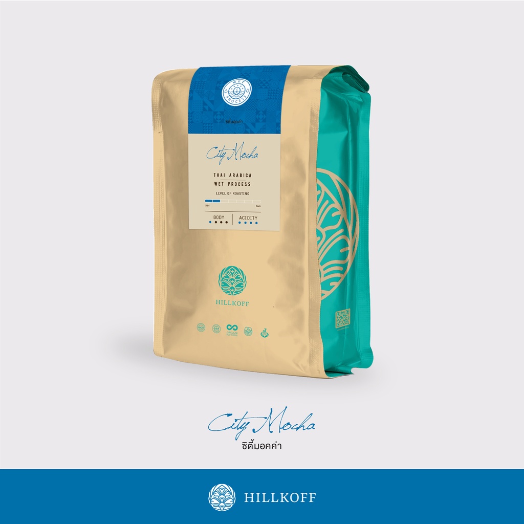 Hillkoff : เมล็ดกาแฟคั่ว อาราบิก้า คั่วอ่อน ฮิลล์คอฟฟ์ (City Mocha) Arabica 100% ขนาด 500 g กาแฟ อราบิก้า เมล็ดกาแฟ