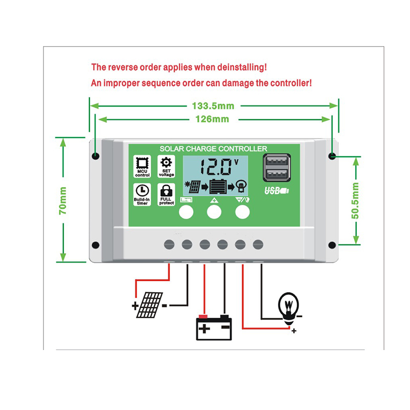 Y&H 20A แผงโซลาร์ชาร์จคอนโทรลเลอร์สำหรับแบตเตอรี่ตะกั่วกรด/ลิเธียม 12V 24V พร้อมจอแสดงผล LCD แสงพื้นหลัง USB คู่และการตั้งเวลาเปิด/ปิดชั่วโมง
