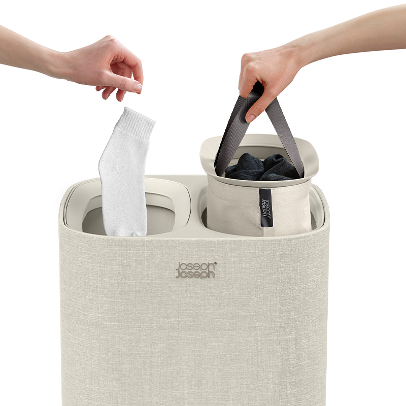 Joseph Joseph ตะกร้าผ้า 2 ช่อง สำหรับแยกประเภทหรือสีผ้า ความจุ 60 ลิตร รุ่น Tota สี Ecru N50019