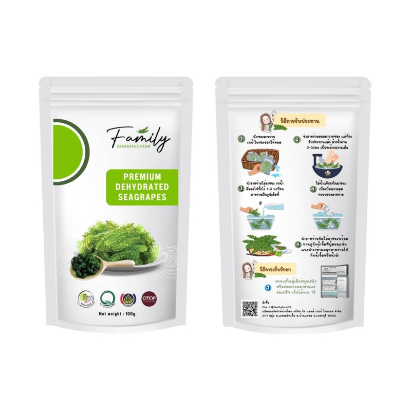 สาหร่ายพวงองุ่นคืนรูป(ไม่ใช่สด) 1ซอง+น้ำจิ้ม 1ขวด(100กรัมขยายได้300-350กรัม)