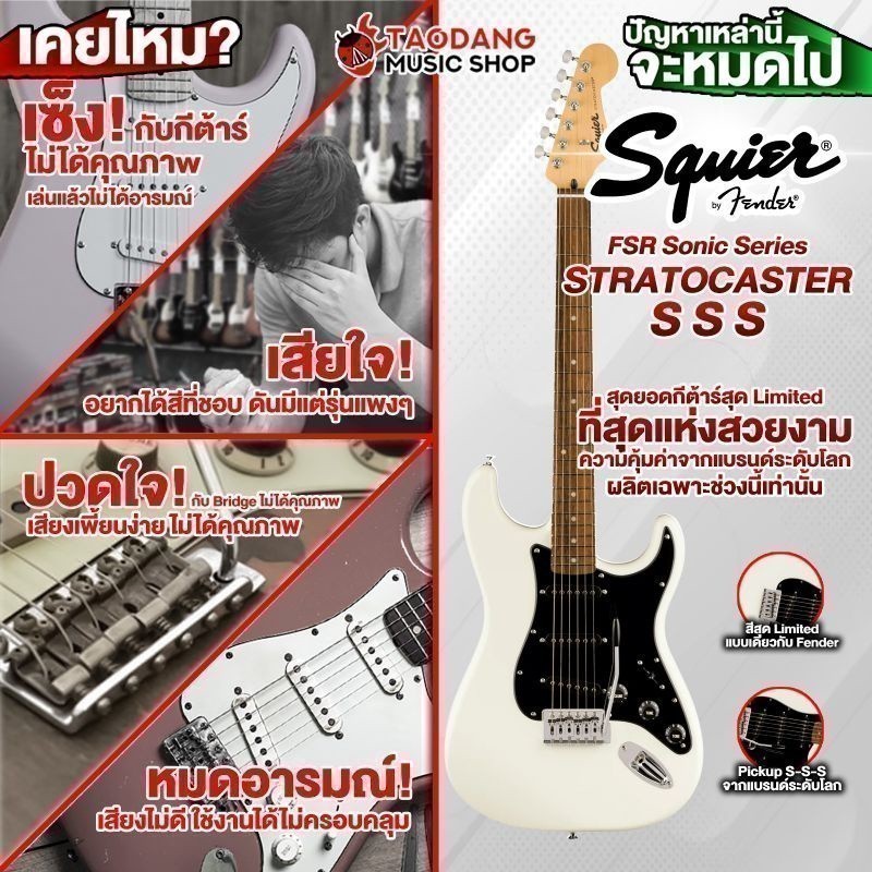 รับส่วนลด 10%, Squier FSR Sonic Stratocaster SSS กีต้าร์ไฟฟ้า Squier FSR Sonic Stratocaster Electric Guitar เต่าแดง