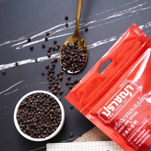 พริกไทยดำเม็ด100% (Black Pepper)ขนาด150 กรัม แบบซองซิป ตรา ปราชญา