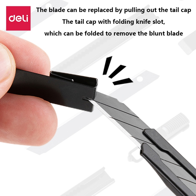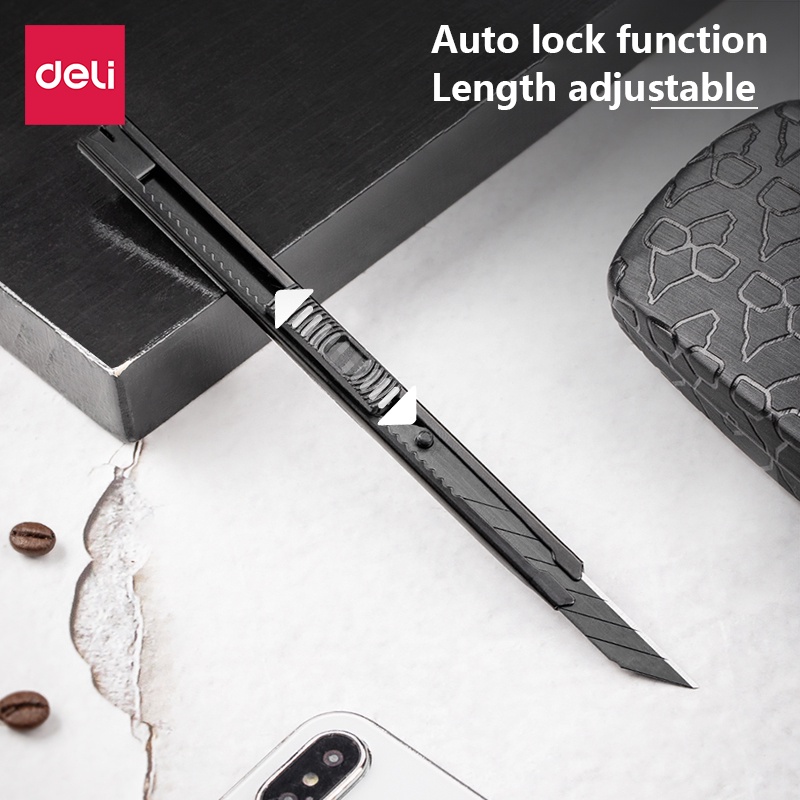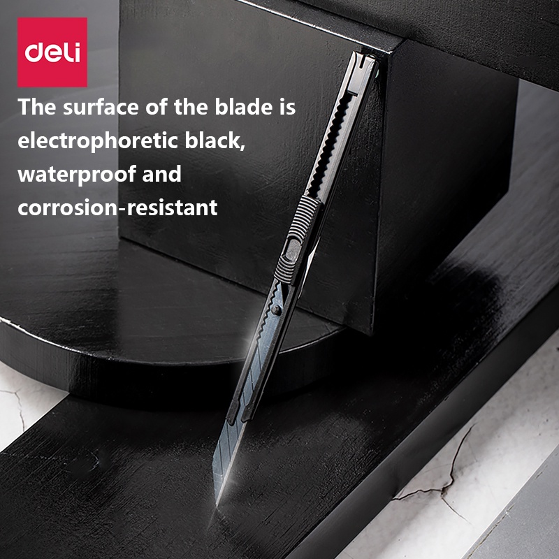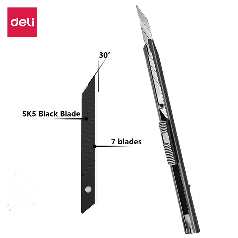 Deli คัตเตอร์ คัตเตอร์เหล็กเล็ก มีดคัตเตอร์ 9mm SK5 สีดำ 30°/60° คัตเตอร์ด้ามแสตนเลส มีดคัตเตอร์ Cutter
