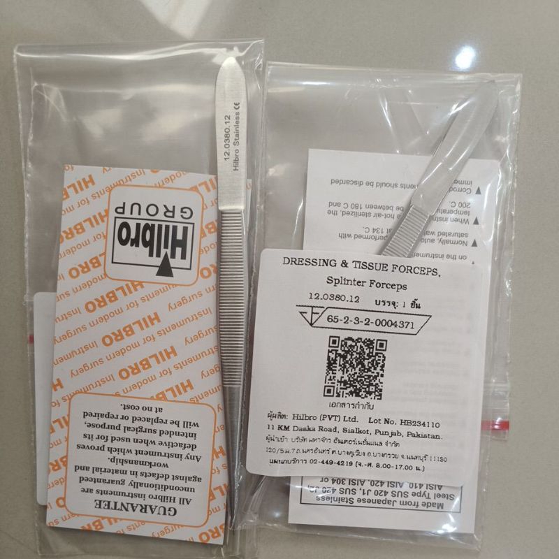 HILBRO-12.0380.12 SPLINTER FORCEP 12.5cm ปากคีบปลายแหลม ปากคีบไม่มีเขี้ยว ปากคีบ