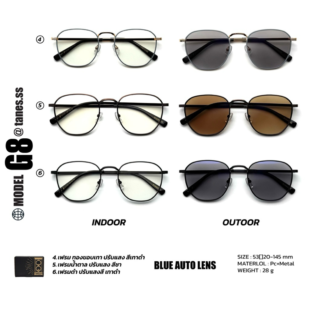 TANES.SS | G8 [BLUE AUTO LENS] [กรองแสงสีฟ้า] ออกแดดเปลี่ยนสี[ออโต้เลนส์]นำกรอบเปลี่ยนเลนส์สายตาได้