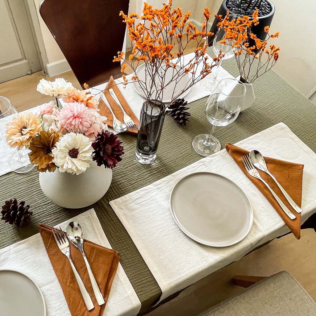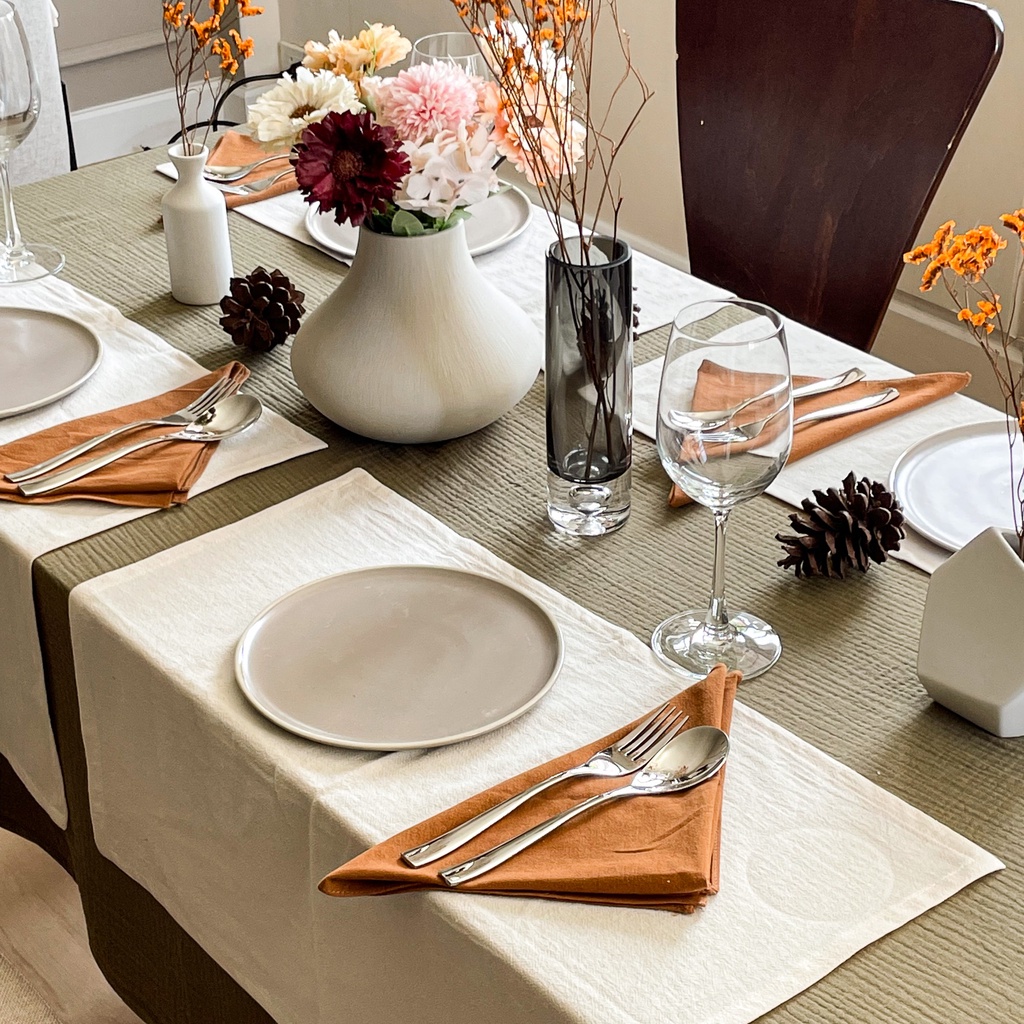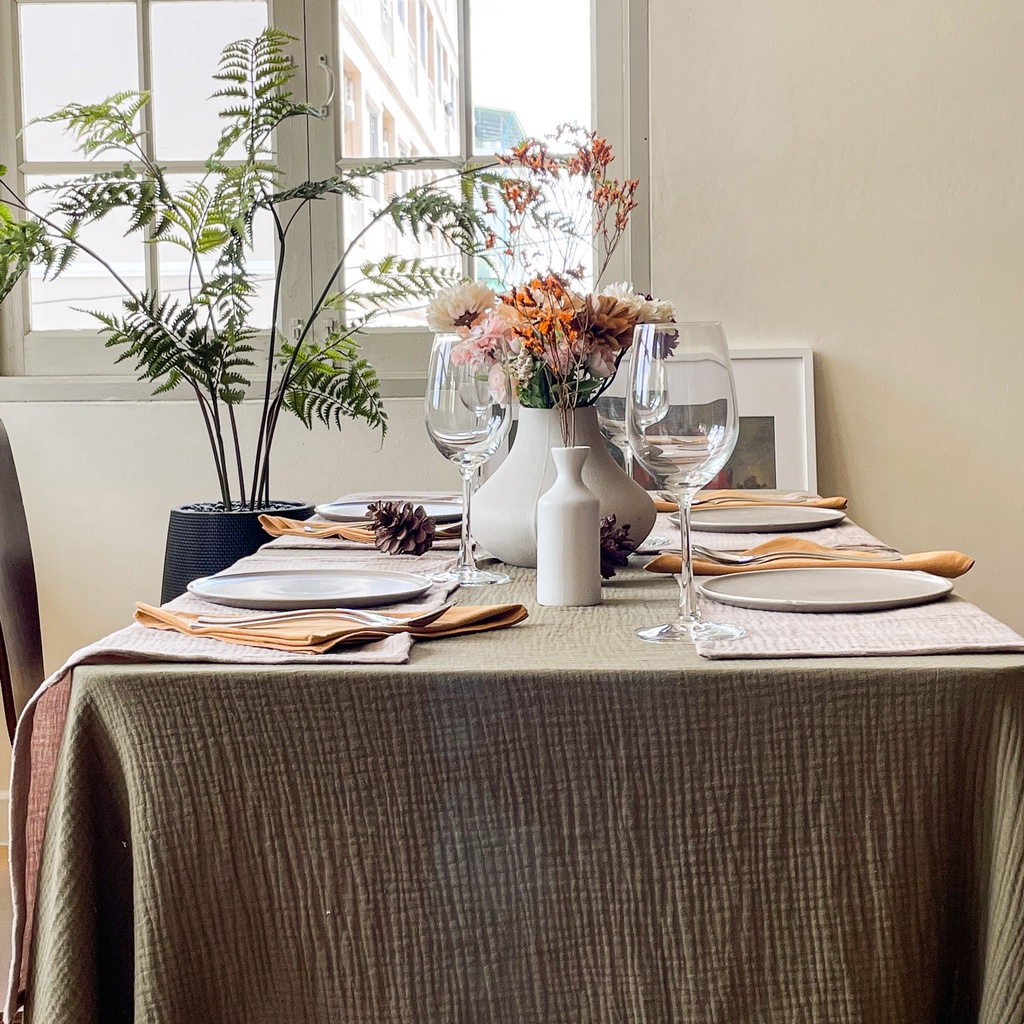(ตัดตามขนาด) ผ้าปูโต๊ะ ผ้า Cloud cotton - Solstice Home ทำจาก คอตตอน 100% ผ้าคลุมโต๊ะ งานเลี้ยง