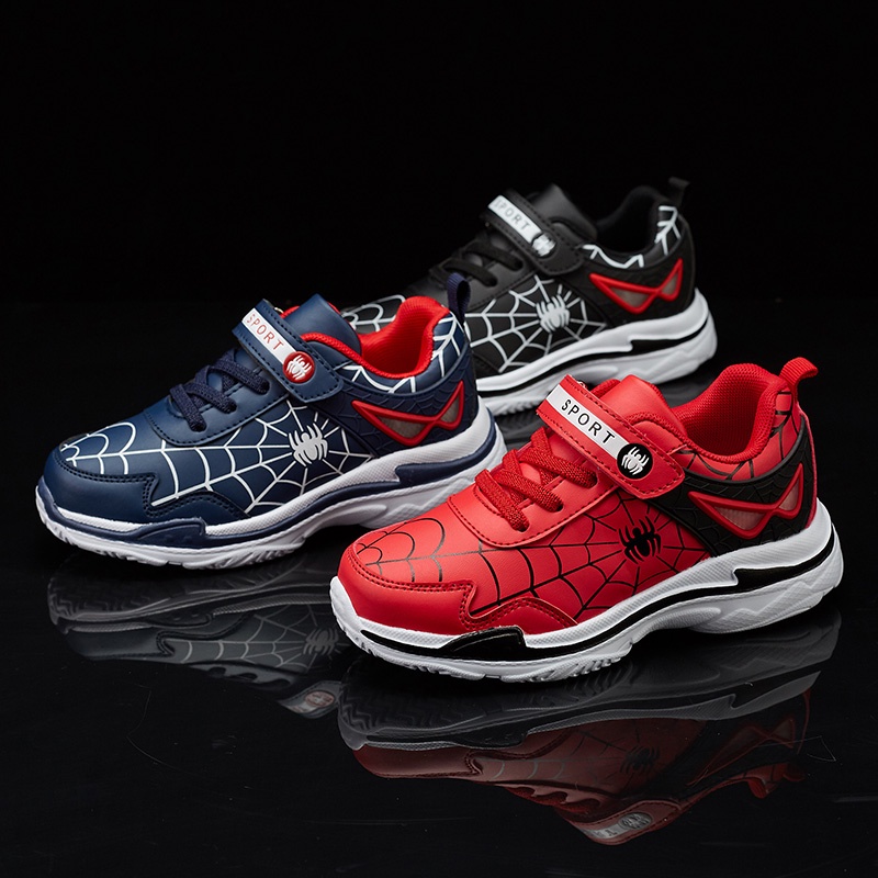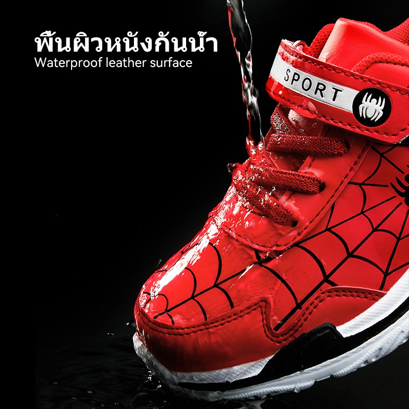 รองเท้าเด็กผู้ชาย หนังพียู ลายการ์ตูน สไปเดอร์แมน รองเท้าผ้าใบเด็ก อ่อนนุ่ม กันน้ำ