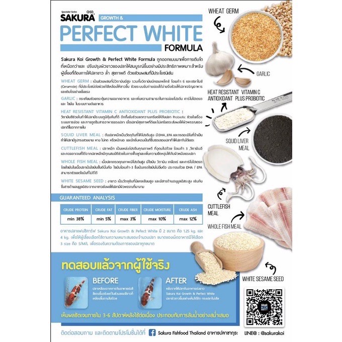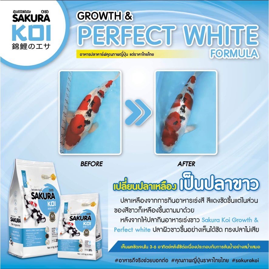 ซากุระโค่ย อาหารปลาคาร์ฟ SAKURA KOI สูตรเร่งขาว โปรตีน38% เหมาะสำหรับ ตันโจ ชิโร่ ขนาด 4 กก.