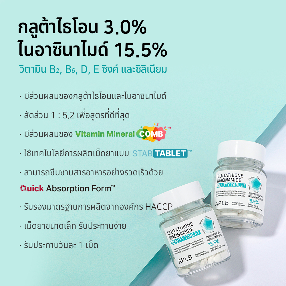 APLB Glutathione Niacinamide Beauty Tablet กลูต้าไธโอน ไนอาซินาไมด์ บิวตี้ แท็บเล็ต 30 เม็ด | ผิวสวยกระจ่างใสจากภายใน