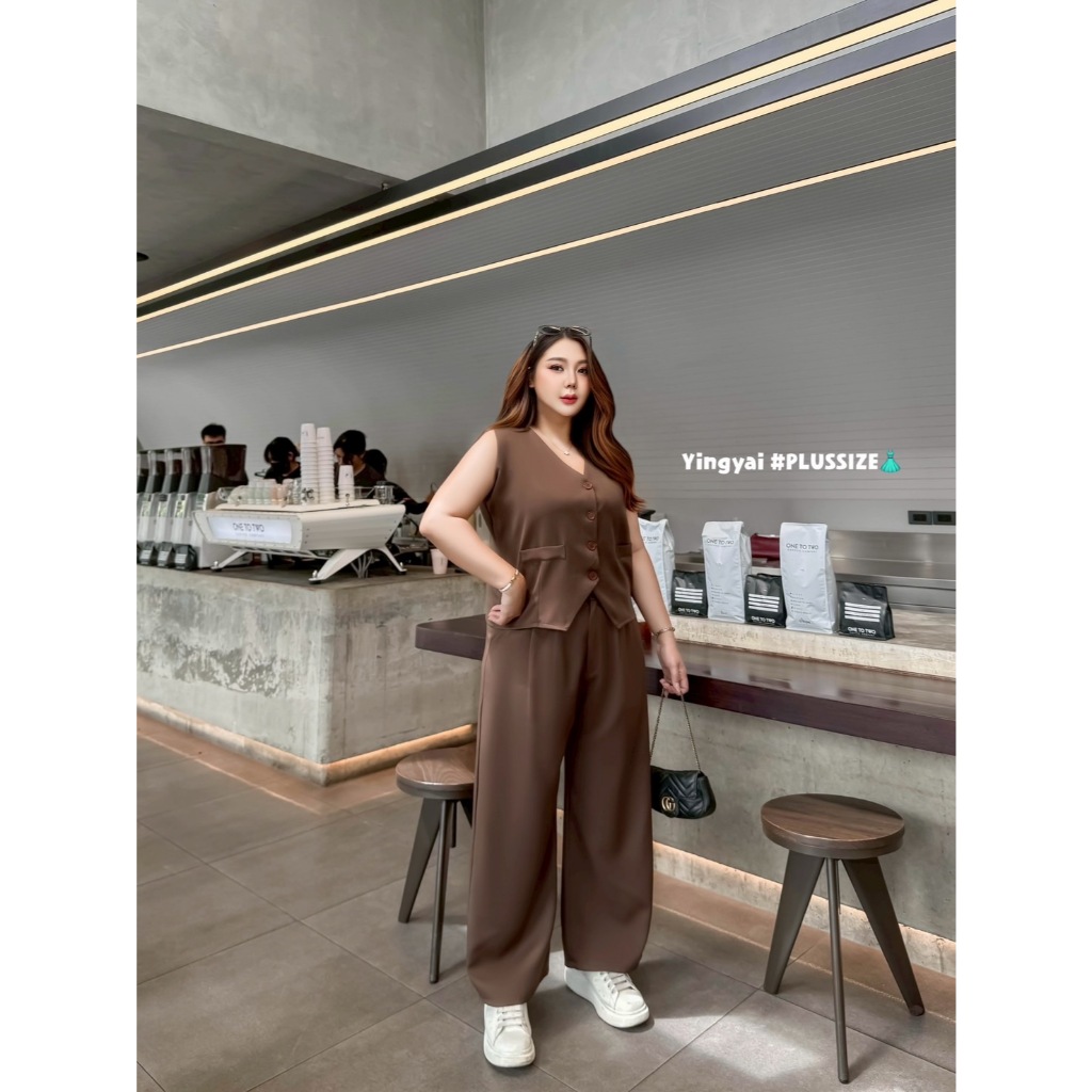 เซ็ต2ชิ้น เสื้อกั๊กสูทกระดุมหน้า+กางเกงขายาวกระดุมหน้า ใส่แมชกันเซทเดียวจบ ห้ามพลาดกันน๊า ไซส์ใหญ่ สาวอวบ พลัสไซส์ YB