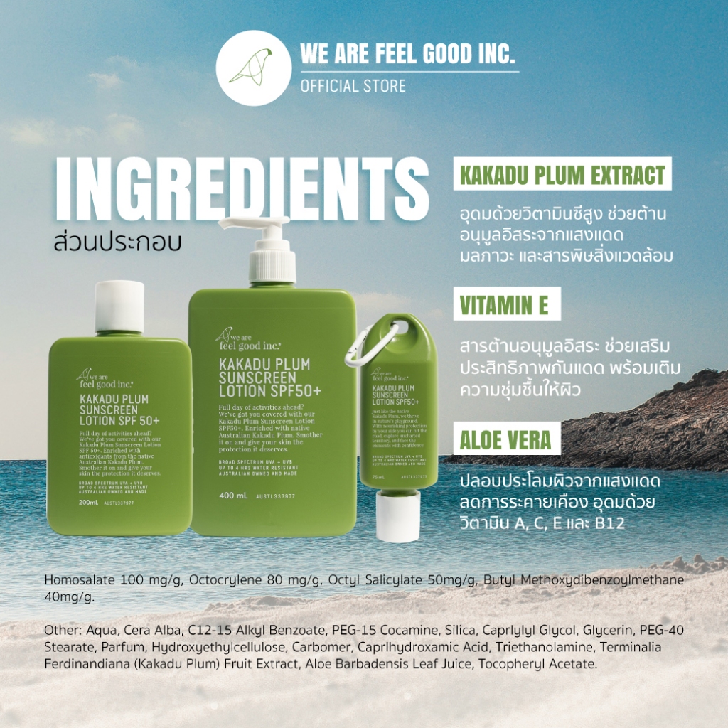 We Are Feel Good Inc. : Kakadu Plum Sunscreen SPF 50+ โลชั่นกันแดด คาคาดู พลัม SPF 50+ ขนาด 200ml