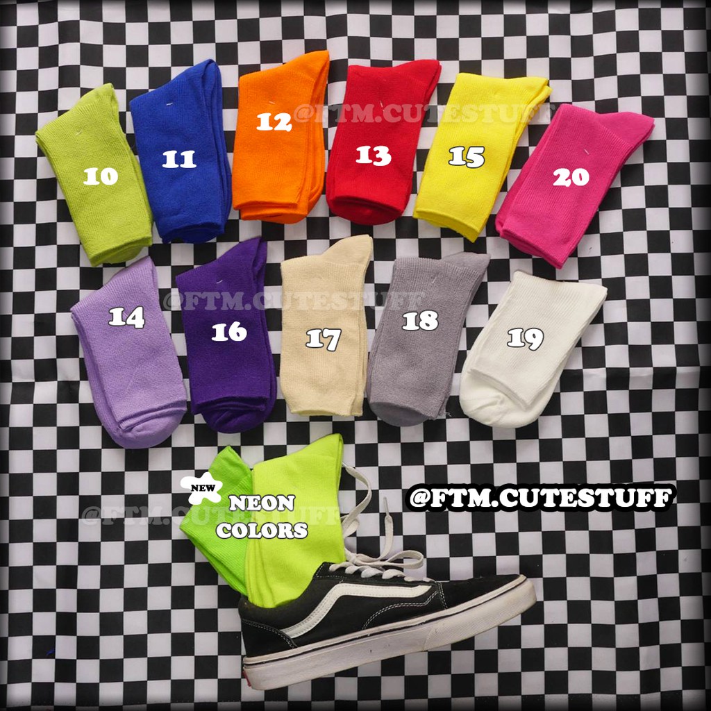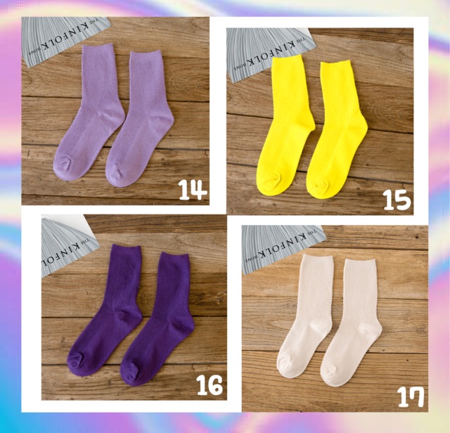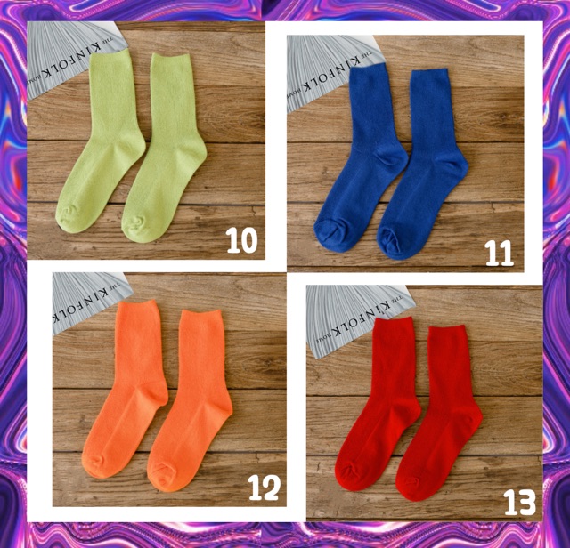 ( พร้อมส่งจ้า ) 🔥สีสุดจี๊ด เข้าใหม่แล้วจ้า!! ถุงเท้าสีพื้นข้อกลาง 24สี 🧦