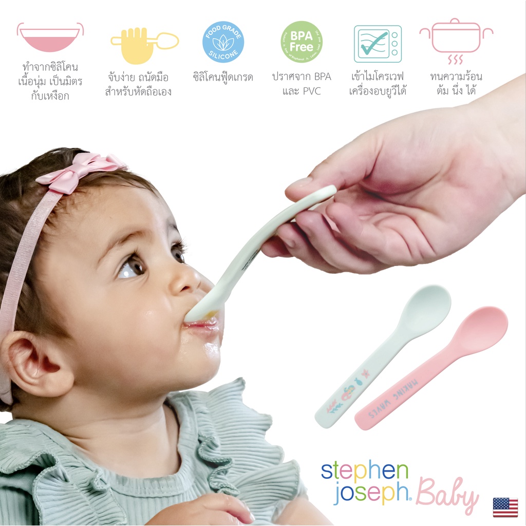 (พร้อมส่ง) Stephen Joseph Baby ช้อนเด็ก ซิลิโคนฟู้ดเกรด100% ไม่บาดปาก ไร้สาร BPA และ PVC