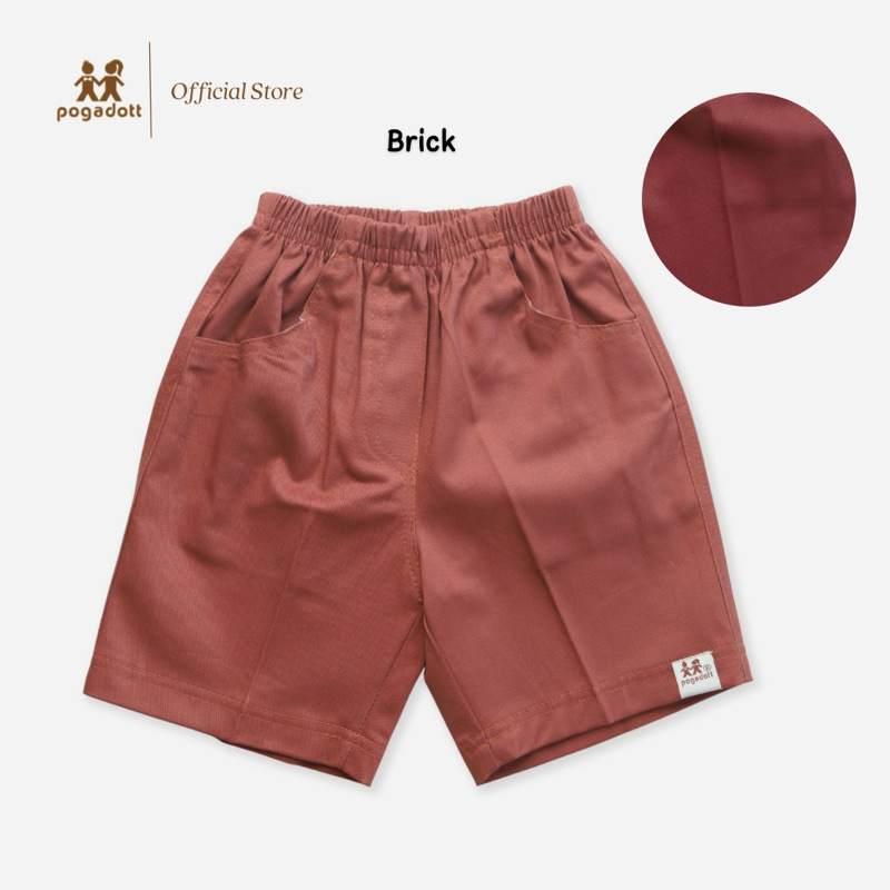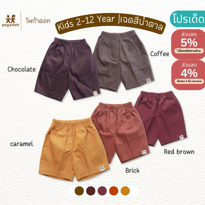 POGADOTT กางเกงขาสั้นเด็กผู้ชาย 2-12 ปี ขา 3 ส่วน สีพื้นโทนน้ำตาล ผ้าฝ้าย