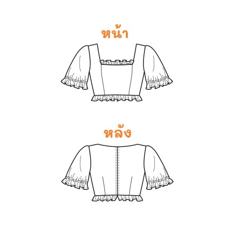 แพทเทิร์นเสื้อครอป แขนตุ๊กตา ซิปหลัง