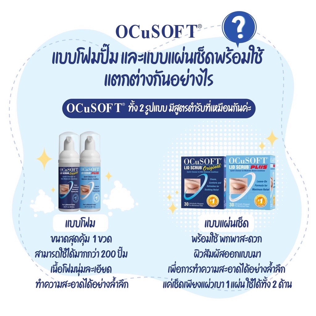 OcuSoft Lid Scrub Original/ Scrub Plus อ๊อกคิวซอฟท์ ลิด สครับ ออริจินัล/สครับ พลัส แผ่นสครับ 30 แผ่น และโฟมสครับ 50มล.