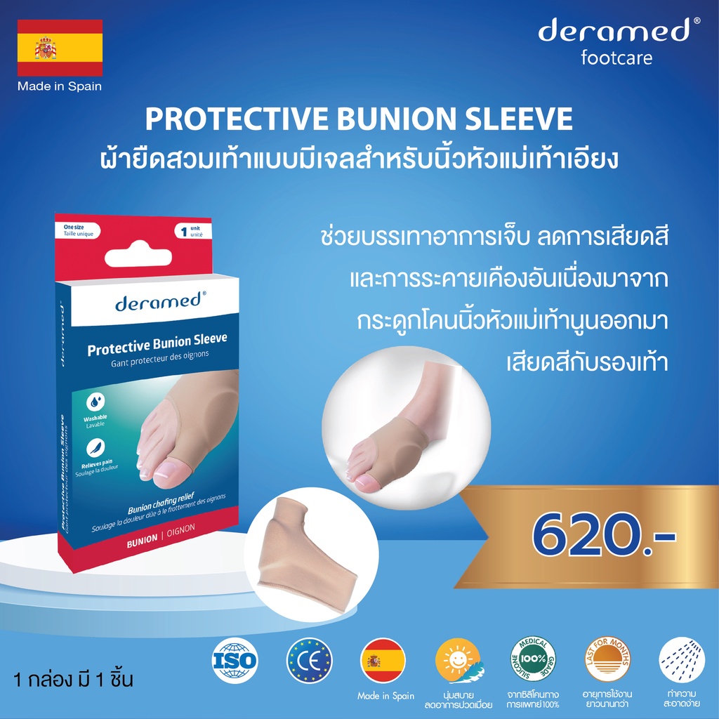Deramed Footcare Protective Bunion Sleeve ผ้ายืดสวมเท้าแบบมีเจลสำหรับนิ้วหัวแม่เท้าเอียง บรรเทาอาการเจ็บ ลดการเสียดสี