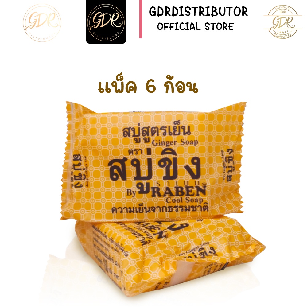 (แพ็ค6ก้อน) สบู่ราเบน ขิงสูตรเย็น สบู่ขิง ราเบน Ginger soap 130g. Raben