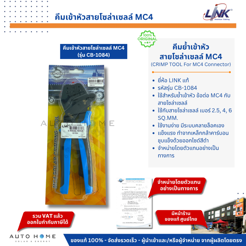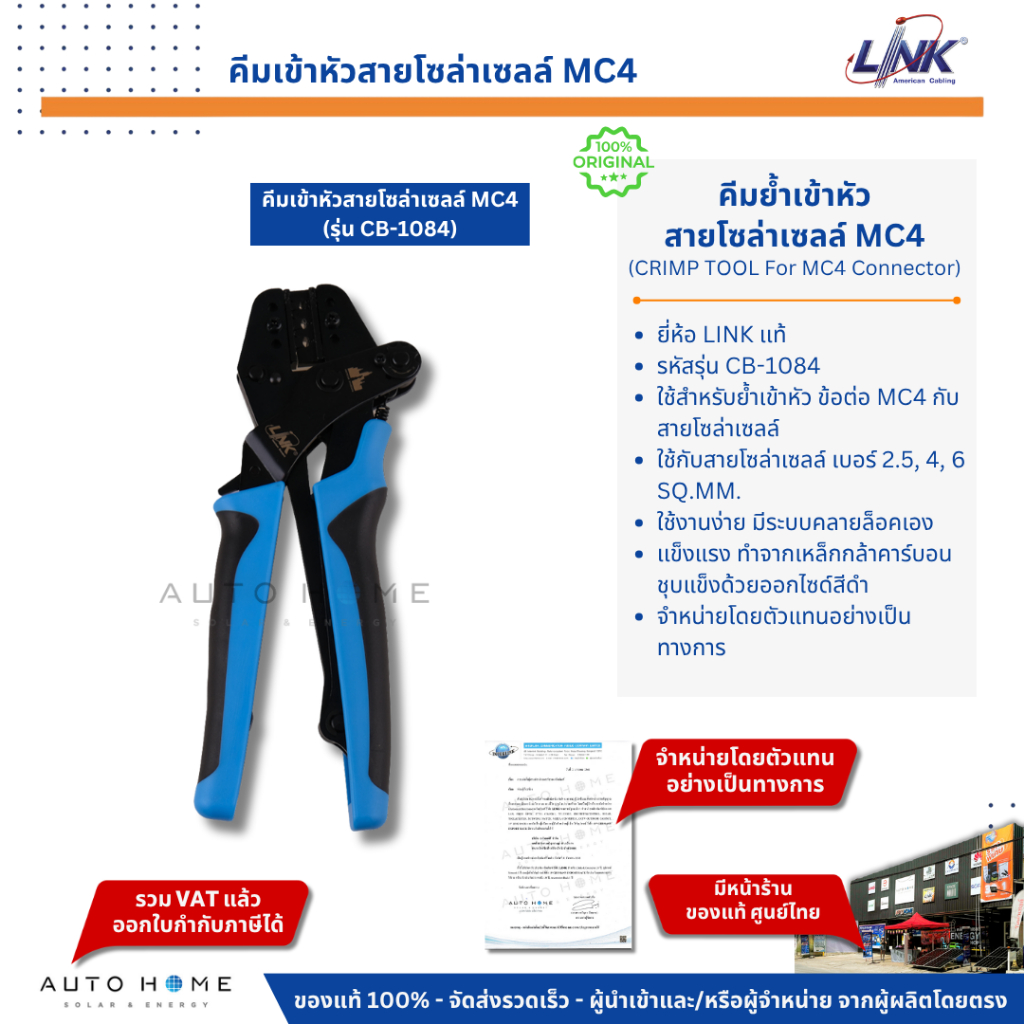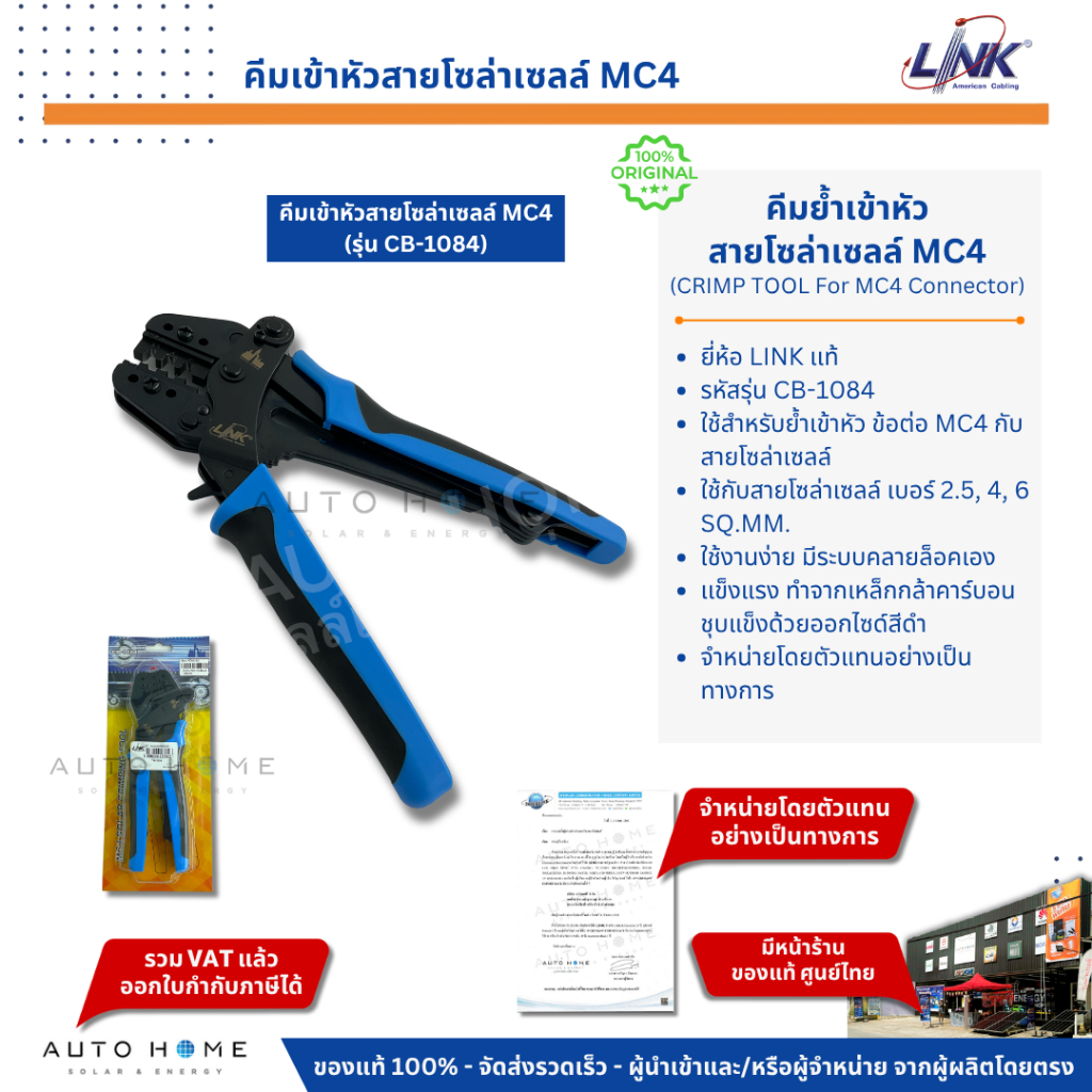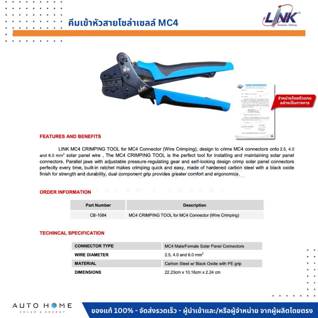 คีมเข้าหัวสายโซล่าเซลล์ MC4 รุ่น CB-1084 ยี่ห้อ Link (MC4 CRIMPING TOOL for MC4 Connector)