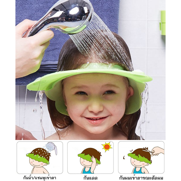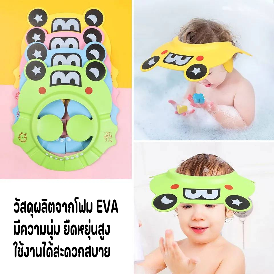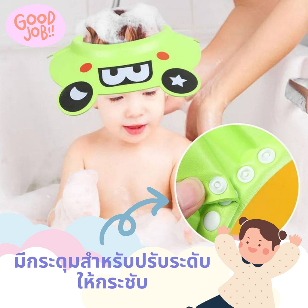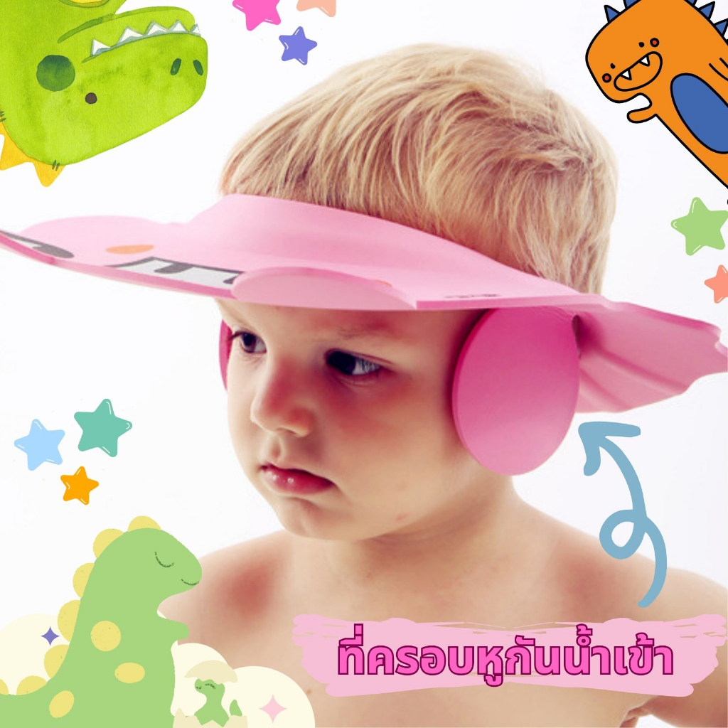 หมวกอาบน้ำเด็ก สำหรับกันน้ำเข้าหูและตา สามารถปรับระดับได้ (มีที่ปิดหู)