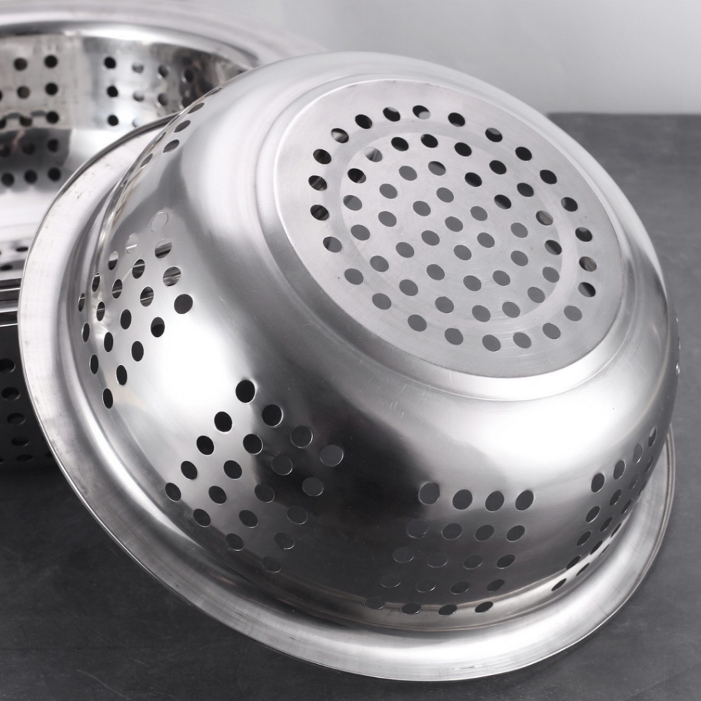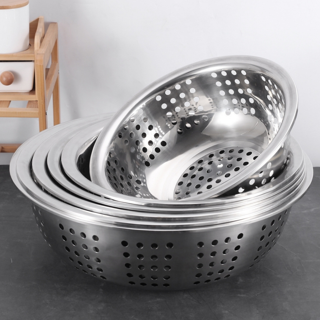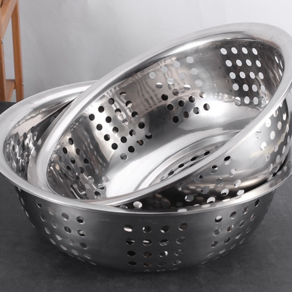 M KIT ตะแกรงล้างผัก กะละมังล้างผัก ตะกร้าล้างผักสแตนเลส FOFO กะละมังรู ทรงกลมกระชอน ตะแกรงกรองน้ำมัน (C2)
