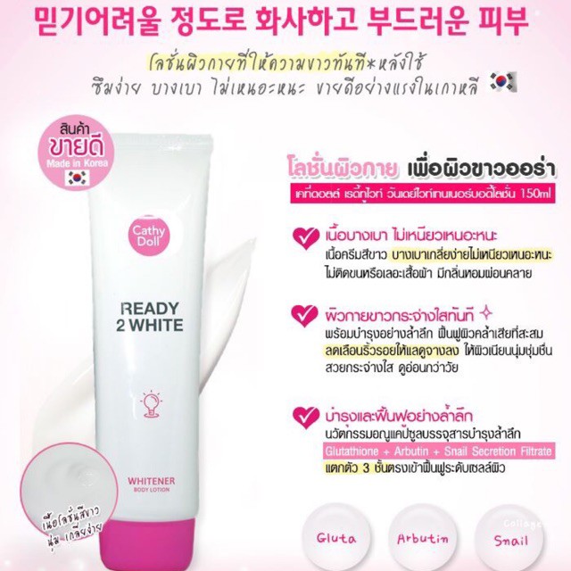เคที่ดอลล์ เรดี้ทูไวท์ ไวท์เทนเนอร์บอดี้โลชั่น 150ml Cathy Doll Ready 2 White