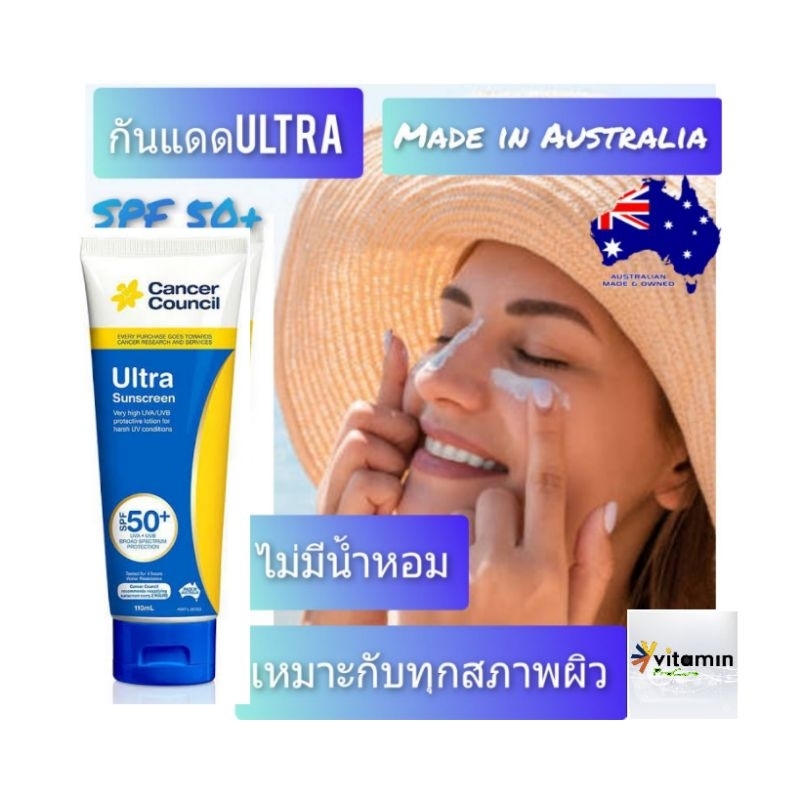 ครีมกันแดด cancer council ultra sunscreen SPF50แท้100% ครีมกันแดดหน้า ออสเตรียเลีย sun block ซันบล็อก บิโอเร biore