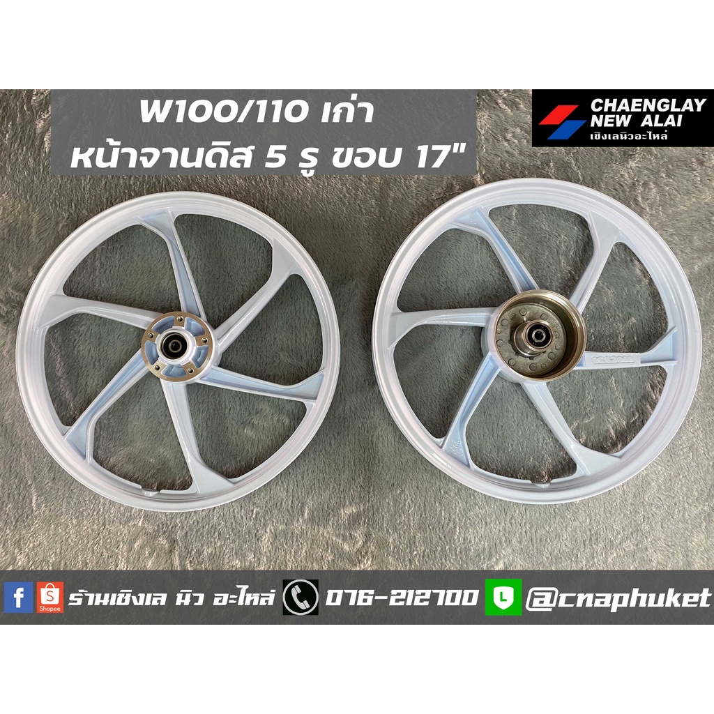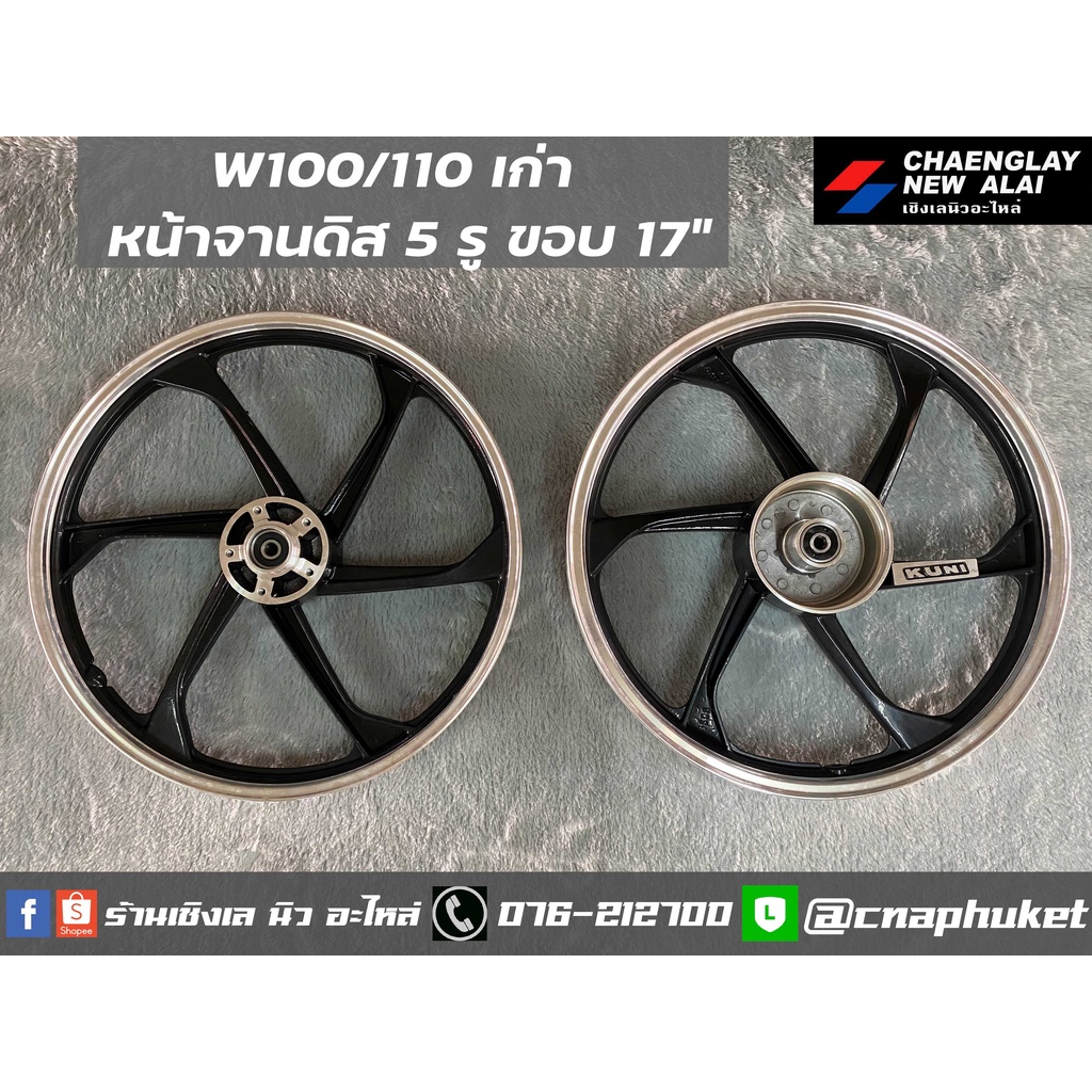 ล้อแม็ก Kuni Wave100/110 รุ่นเก่า จานดิส 5 รู ขอบ 17 นิ้ว ดำ/ขาว