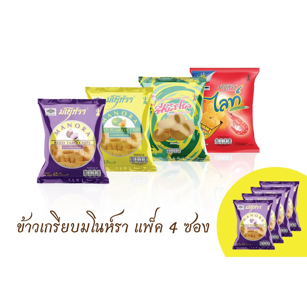 (Pack4ซอง) มโนห์ราMANORA ข้าวเกรียบทอด ขนาดบรรจุต่อซอง 60-65 กรัม