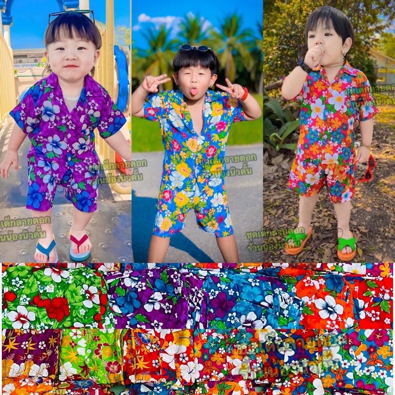 พร้อมส่งในไทย 🌺ราคาถูกที่สุด🌸ชุดเด็กลายดอก ชุดสงกรานต์ เด็กเล็ก-โต (เสื้อ+กางเกง)