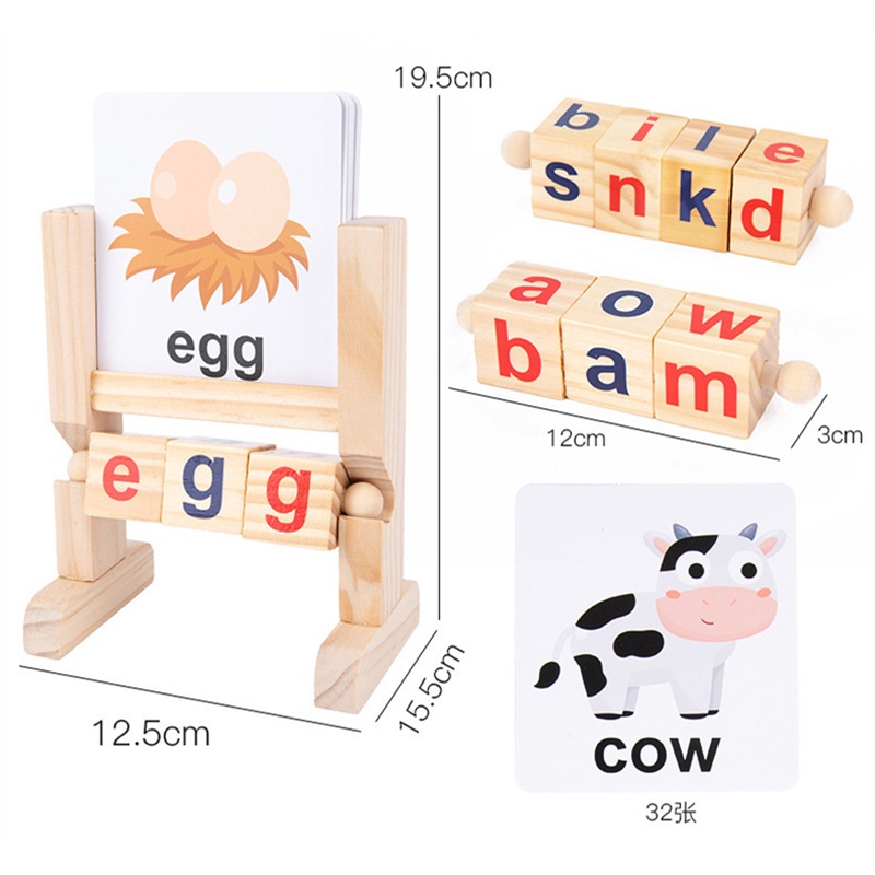 Treeyear บล็อกไม้อ่านหนังสือ แบบสั้น รูปตัวอักษร Montessori ของเล่นเสริมการเรียนรู้ สําหรับเด็กก่อนวัยเรียน