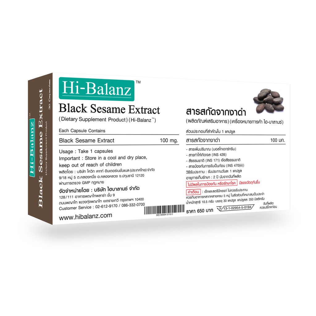[ผลิตภัณฑ์ดูแลเส้นผมและกระดูก] Hi-Balanz Black Sesame Extract สารสกัดจากงาดำ 1 กล่อง 30 แคปซูล