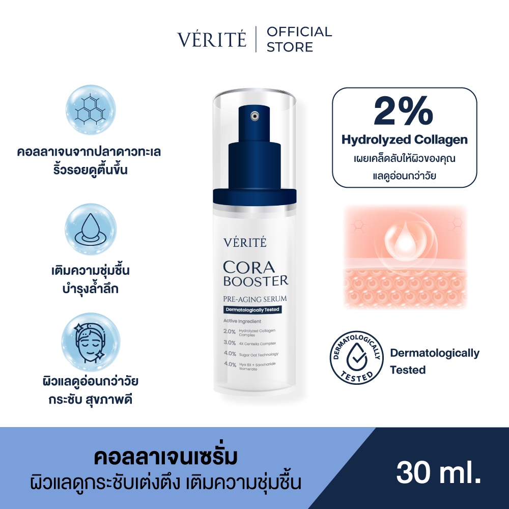 Verite Cora Booster 30ml คอลลาเจนเซรั่ม 30 มล. ผิวแลดูอ่อนวัย ริ้วร้อยตื้นขึ้น