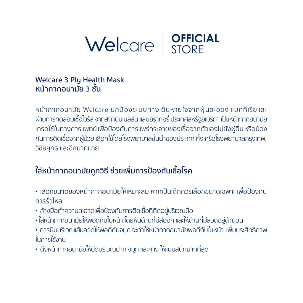 [Official] หน้ากากอนามัย Welcare ทางการแพทย์ 3 ชั้น ระดับ 1 ช่วยป้องกันฝุ่น PM2.5 50 ชิ้น/กล่อง