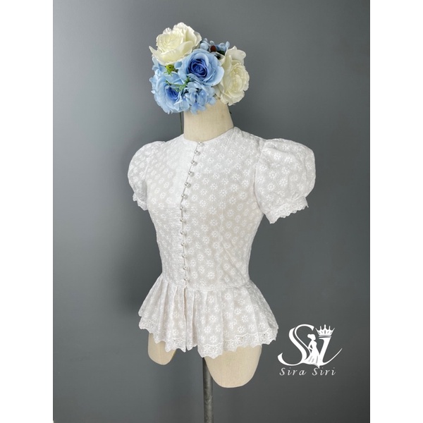 เสื้อทำบุญ เสื้อทำงาน เสื้อคอตตอนแขนตุ๊กตา กระดุมมุข น่ารักมาก