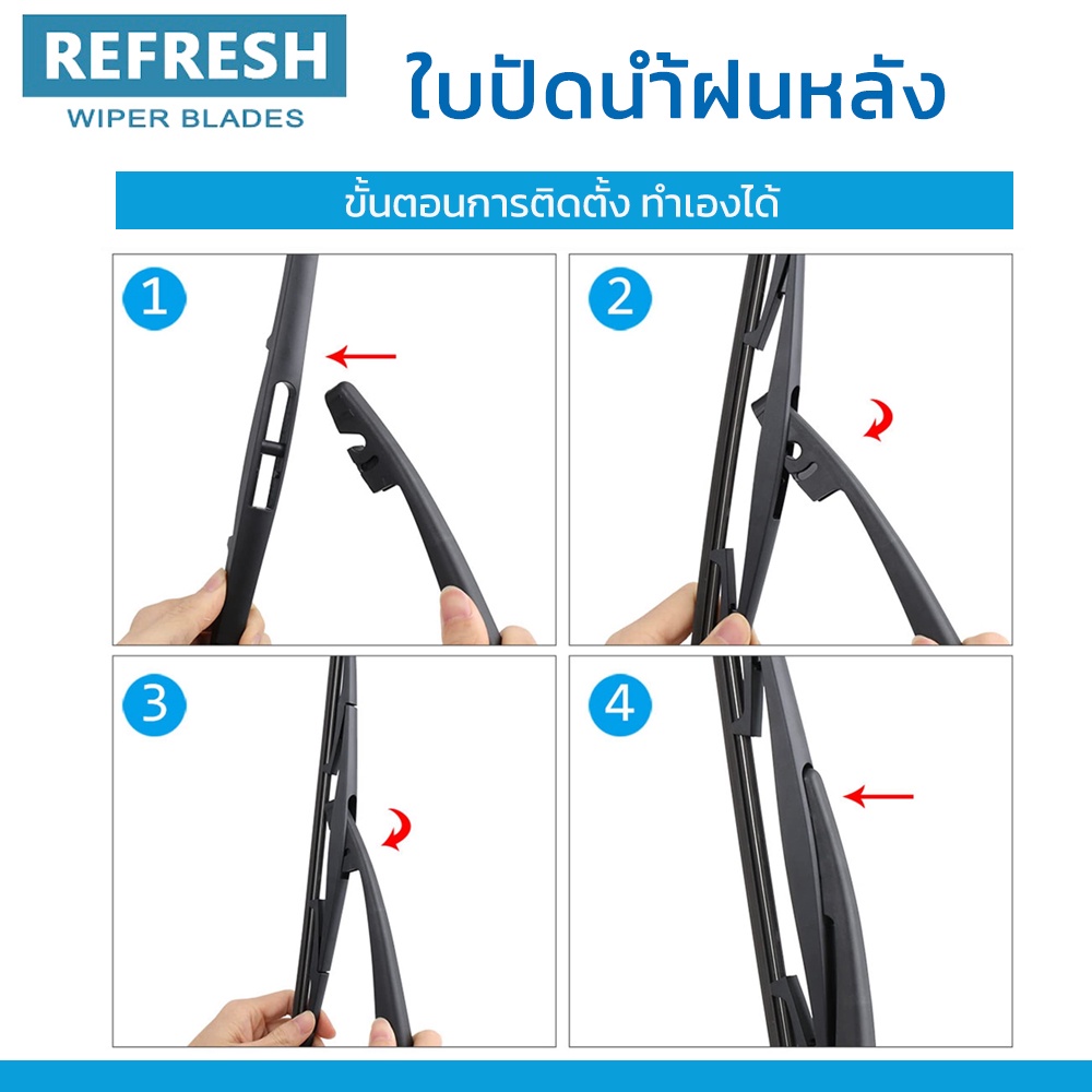 REFRESH ใบปัดน้ำฝนหลัง BACKFIT สำหรับ NISSAN MARCH (ปี 2010-2021) ขนาด 12" ตรงรุ่น (RB610)