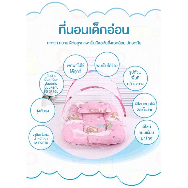 มุ้งครอบ แถมที่นอน+หมอน ที่นอนเด็กอ่อน มุ้งครอบเด็ก ที่นอนเด็ก มุ้งครอบเด็กพับได้ มุ้งกันยุง มุ้งกันยุงเด็ก มุ้งเด็กอ่อน