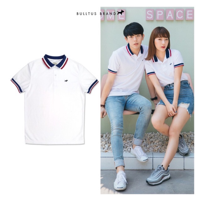 เสื้อโปโลบลูตัส Bulltus Brand สีขาวปกกรม รุ่นปก 3tone เก็บเงินปลายทางได้