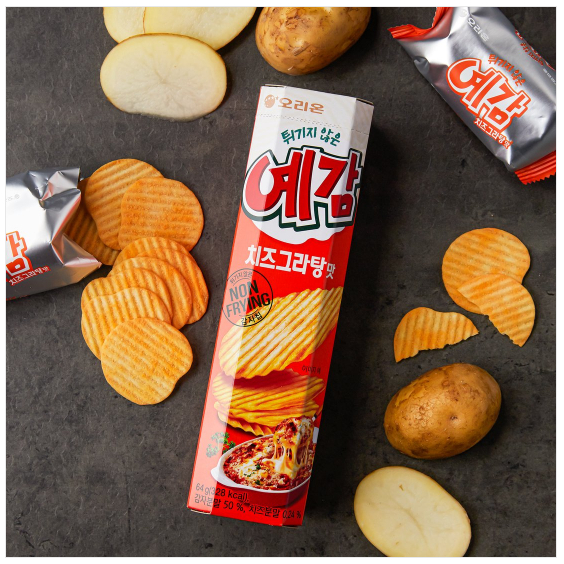 ขนมเกาหลี มันฝรั่งอบกรอบแบบแผ่น รสชีส Orion Potato Chip Cheese 64g Non-Frying โอริออน เยกัม 예감