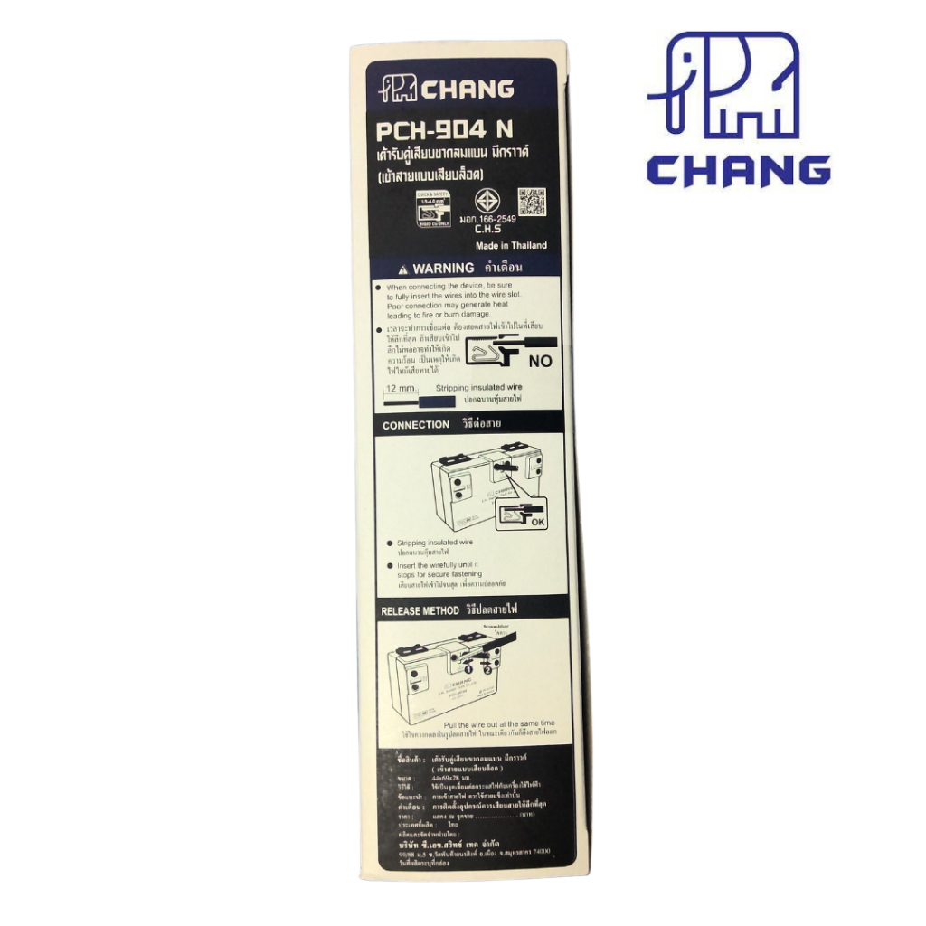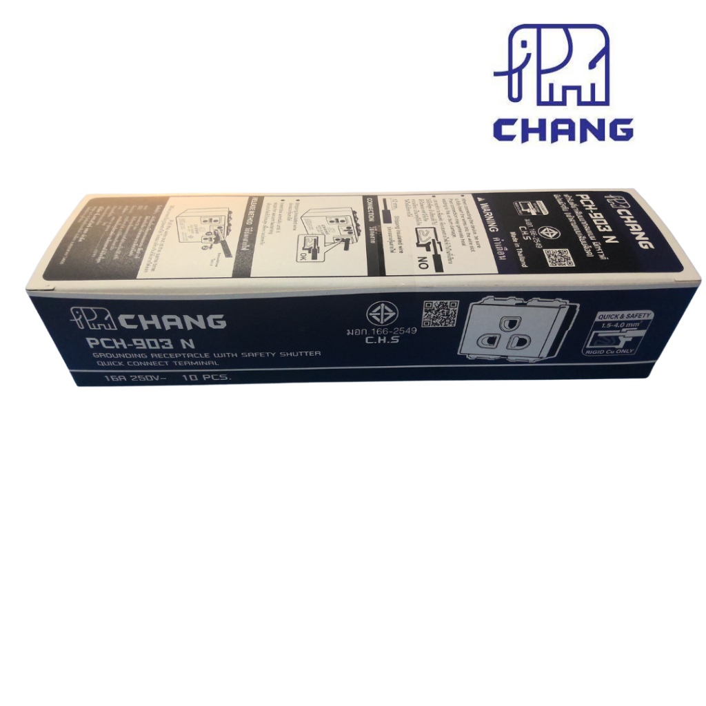 ยกกล่อง 10 ตัว ช้าง ปลั๊กกราวด์เดี่ยวรุ่นใหม่ เต้ารับเดี่ยวเสียบขากลมแบน มีกราวด์ เสียบล็อค PCH-903N