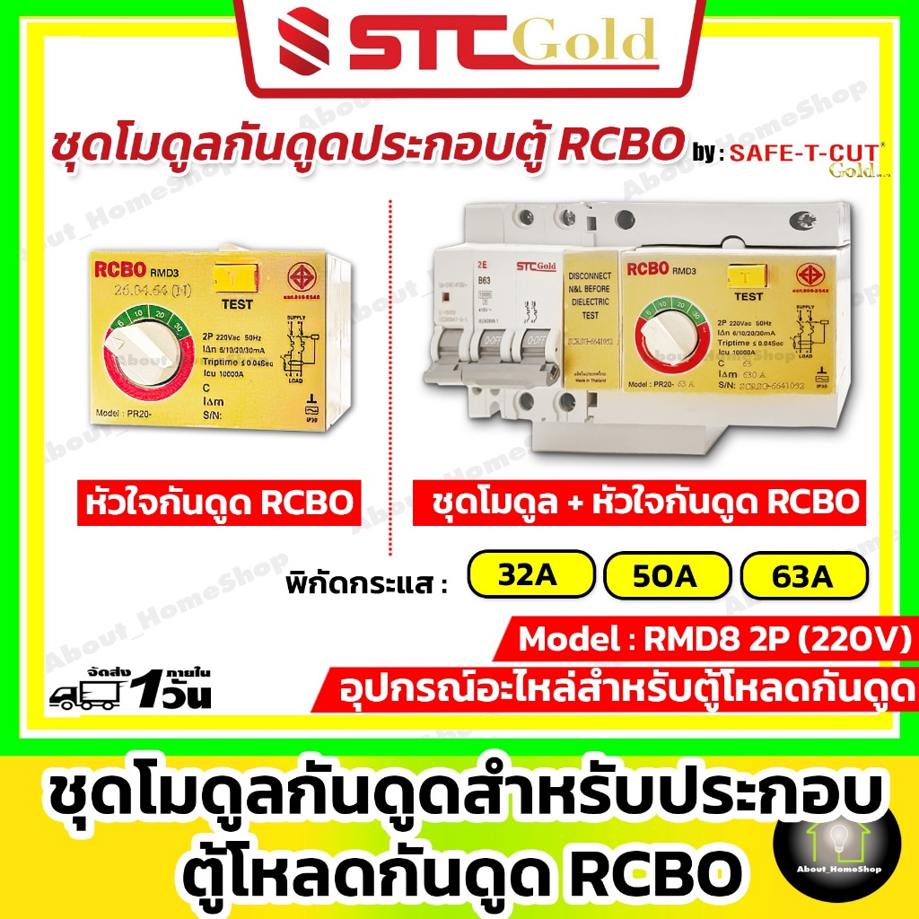 SAFE-T-CUT เซฟทีคัท-โกลด์ ชุดโมดุลกันดูด + หัวใจกันดูด RCBO รุ่น RMD3 ( STC Gold - RCBO MODULE )