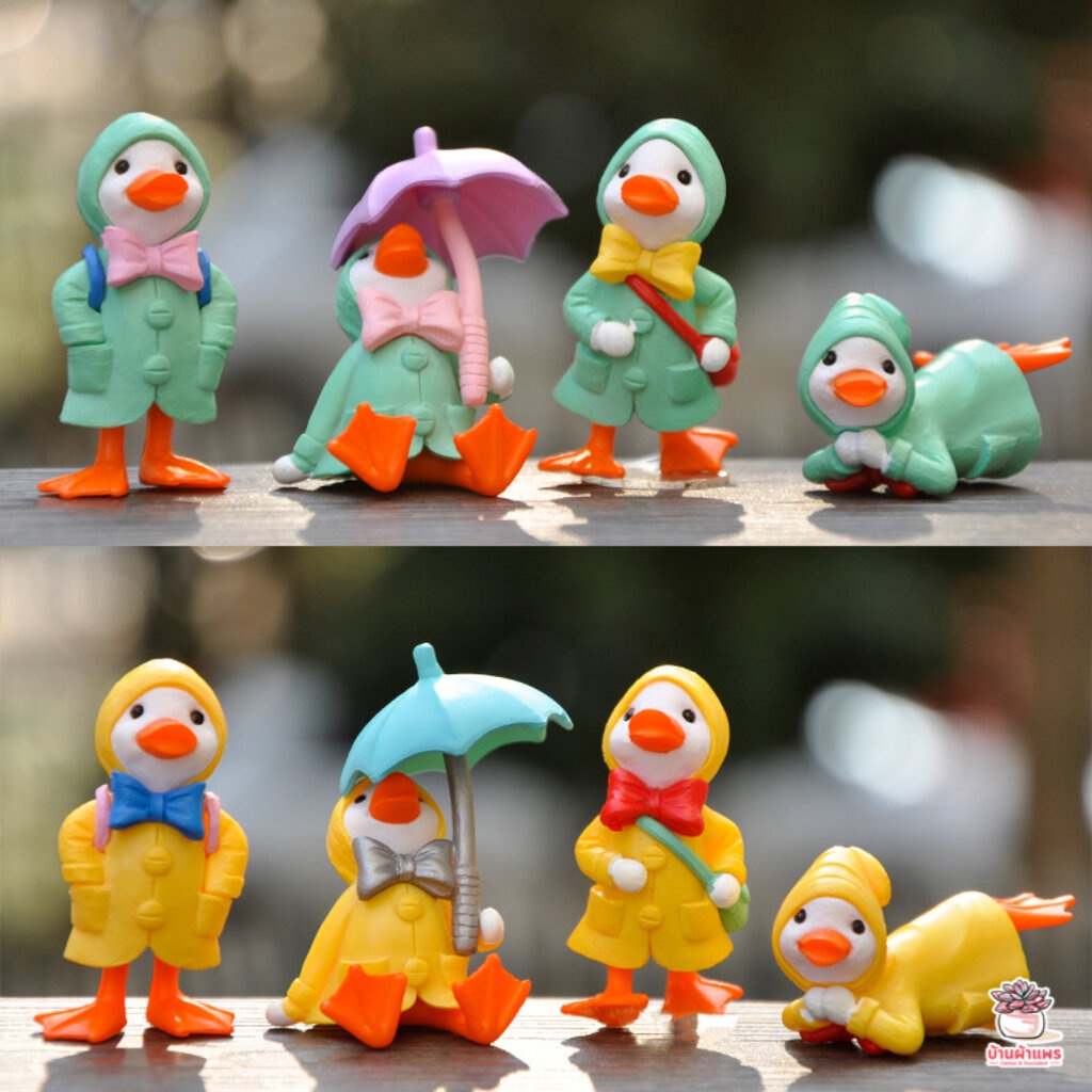 เป็ดน้อยในฤดูฝน [ เซต 4 ชิ้น ] ตุ๊กตาจิ๋ว โมเดลจิ๋ว แต่งสวน