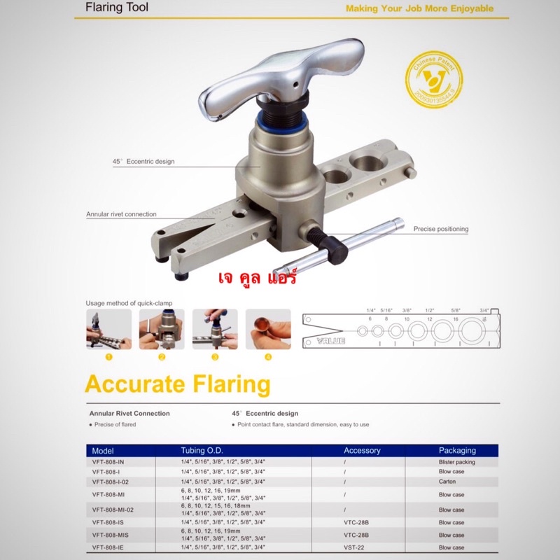 ชุดบานท่อทองแดง ชุดบานแฟร์ ชุดบานแป๊ป แบบลูกเบี้ยว และAuto Free ยี่ห้อVALUE รุ่นVFT-808-I บรรจุในกล่องเครื่องมือ