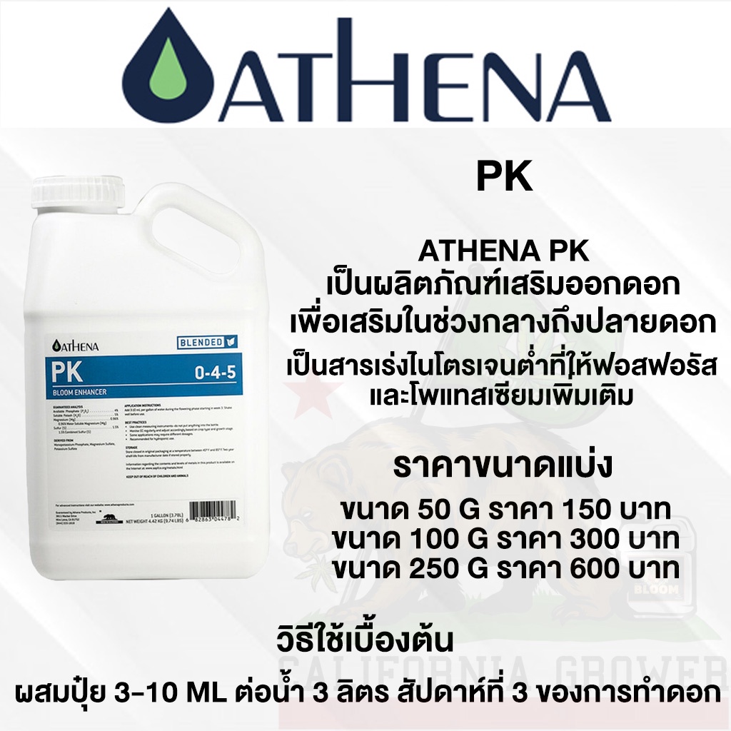 Athena PK ให้ฟอสฟอรัสและโพแทสเซียมเพิ่มเติม ซึ่งพืชที่ให้ผลผลิตสูง ขนาดแบ่ง 50/100/250 ML ปุ๋ยนอกของแท้ ปุ๋ยUSA