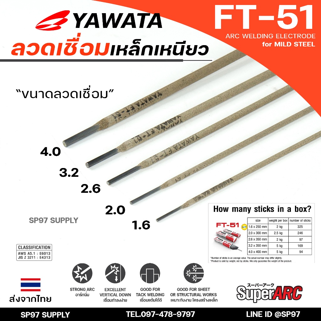 (ยกกล่องรวมVAT) Yawata ยาวาต้า FT-51 ลวดเชื่อมไฟฟ้า ลวดเชื่อม เหล็กเหนียว สูตรญี่ปุ่น ครบทุกไซส์ ห่อละ 2กิโล-5กิโล
