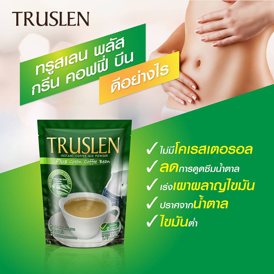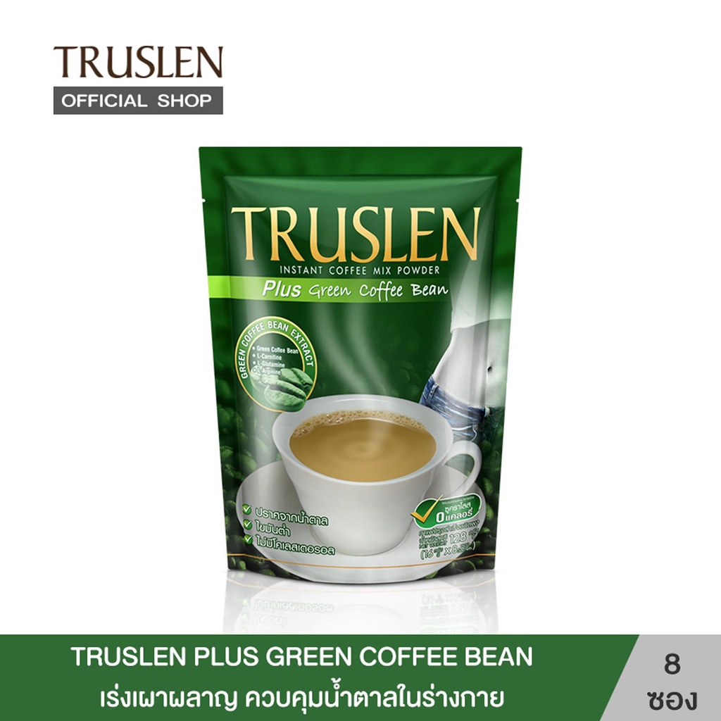TRUSLEN PLUS GREEN COFFEE BEAN ทรูสเลน พลัส กรีน คอฟฟี่ บีน 8 ซอง (12 ถุง/ยกลัง)