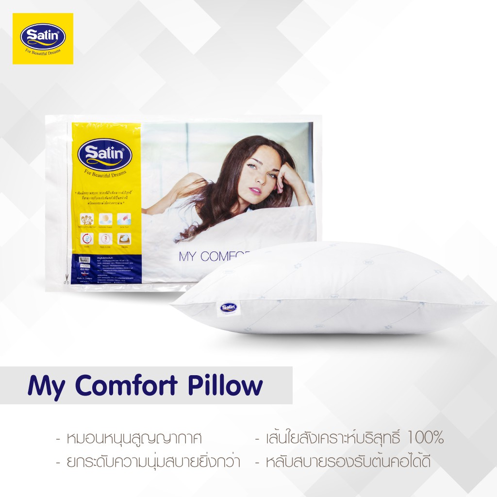 Satin หมอนหนุนสุญญากาศ My Comfort ขนาด 19” x 28” นุ่มพิเศษระดับหมอนโรงแรมชั้นนำ ผลิตใหม่ล่าสุด