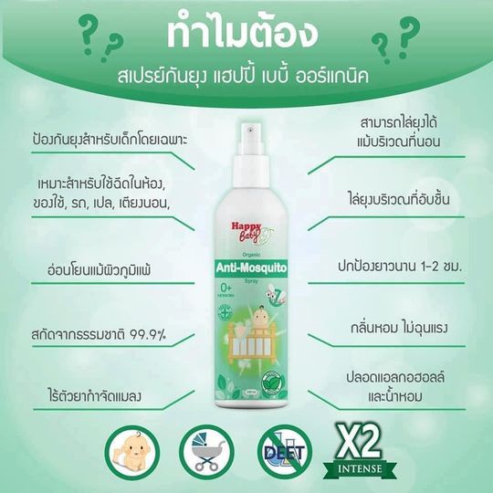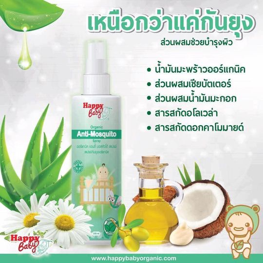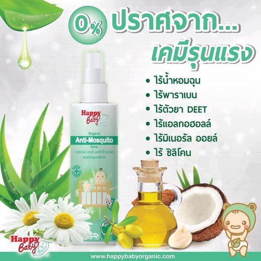 Happy Bady (แฮปปี้เบดี้) Organic Anti-Mosquito Spray (สเปรย์กันยุงออร์แกนิค) 200 ml【ของแท้มีบัตรตัวแทน】